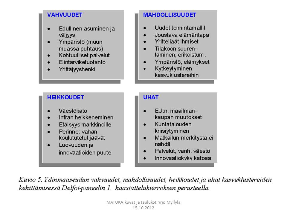 Myllylä, Yrjö & Kai Karsma (2005). Maaseudun tulevaisuus ja klusterit – Arviointia Delfoi-menetelmällä. 64 s. Kauppa- ja teollisuusministeriö, Rahoitetut tutkimukset 10/2005.