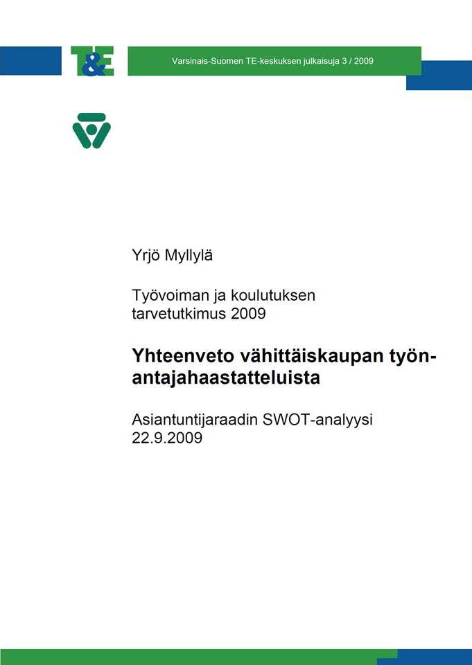 Myllylä, Yrjö (2009). Työvoiman ja koulutuksen tarvetutkimus 2009[1]. Yhteenveto vähittäiskaupan työnantajahaastatteluista. Asiantuntijaraadin SWOT-analyysi 22.9.2009. Varsinais-Suomen TE-keskuksen julkaisuja 3/2009.