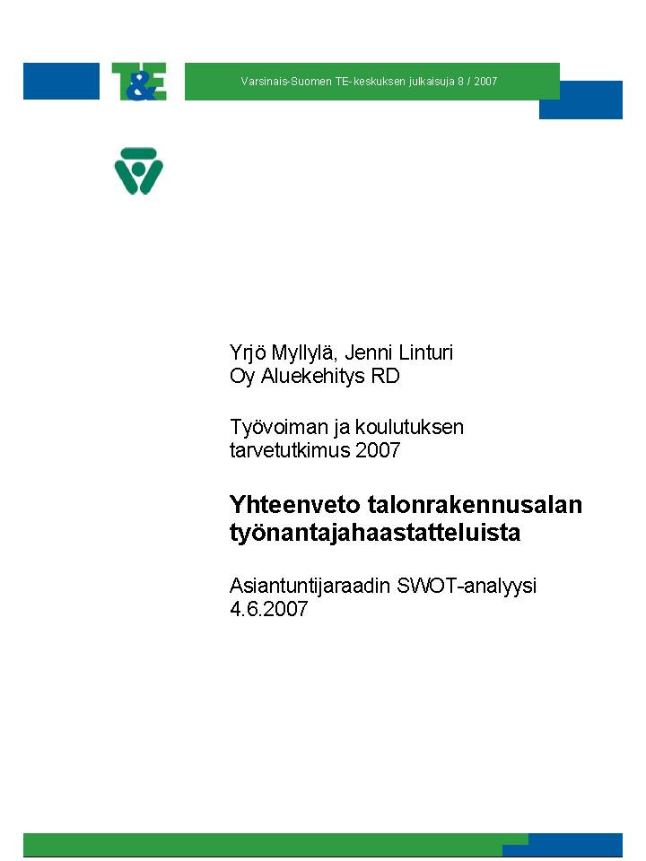 - Tänään – Olemme hankeyhteistyöllä kehittämässä tilaajan toimintaa innovatiivisesti. RD Aluekehitys Oy:n aiempi yhteistyö ELY-keskusten kanssa on johtanut yhteistyössä kehitetyn TKTT eli työvoima- ja koulutustarvetutkimus käytännön tunnustamiseen Euroopan unionin parhaimmaksi alueellisen ennakoinnin käytännöksi (esim. Teknisen palvelun TKTT, Talonrakennusala, Siivous- ja kotitalouspalvelu, Ravintolatoiminta, Vähittäiskauppa jne.) (EU:n komissio Arenas-hankkeessa suorittaman arvioinnin mukaan. Arvioinnin suoritti YK:n ILO:n työjärjestö vuonna 2010 (ks. esim. Marttinen & Myllylä 2011, Futuuri 3/2011, tai Futura 4/2012.)