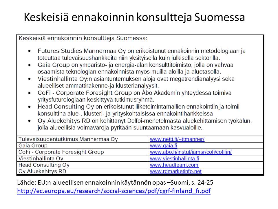 Katso myös yrittäjän Tulevaisuuden tutkimuskeskuksen nimissä keskeisesti toteuttama ja konsultoima