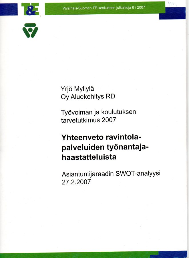 RD Aluekehitys julkaisuesittely: Ravintolapalveluiden työvoiman ja koulutuksen tarvetutkimus, TKTT