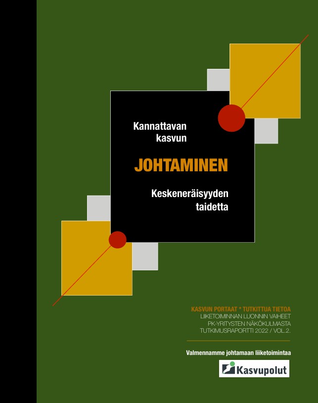 Myllylä, Yrjö & Ossi Luoma (toim.) (2022). Kannattavan kasvun johtaminen – Keskeneräisyyden taidetta. Liiketoiminnan luonnin vaiheet pk-yritysten näkökulmasta. 90 s. Tutkimusraportti, Tutkittua tietoa Kasvujulkaisusarja, Vol 2. Tulevaisuuden Kasvupolut Oy. https://rdaluekehitys.net/2022/07/28/kannattavan-kasvun-johtaminen-kirja-keskeisena-sisaltona-kasvun-porrasmalli/